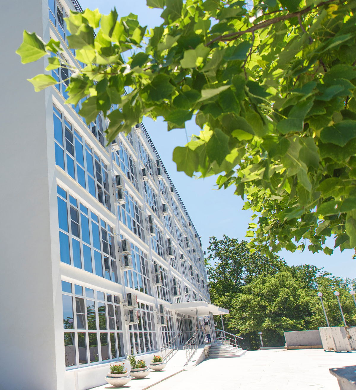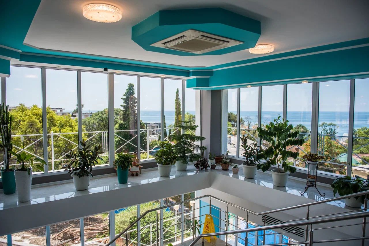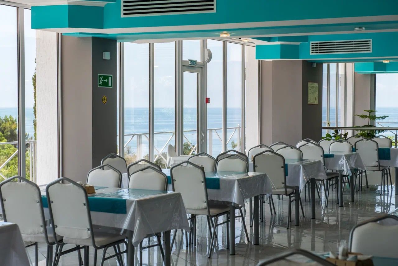 Пышный сад на территории с огромными пальмами и цветущими олеандрами подходит для прогулок. Инфраструктура пансионата способствует комфортному семейному отдыху: это комплекс взрослого и детского открытых круглогодичных бассейнов, пинг-понг, уличная спортивная площадка с тренажерами. Доступна сеть wi-fi и охраняема парковка.